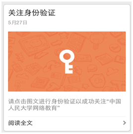注:微信关注成功的前提为,以前注册网上人大账户的时候填写了真实且格式正确的手机号或邮箱号(邮箱号为报名时所留个人邮箱)。由于系统只能让一个微信号关注,如更换微信号关注,请先取消上一微信号的关注。