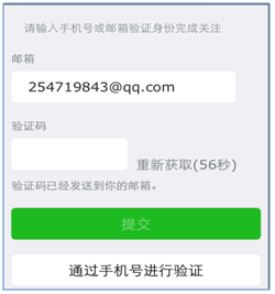 1.扫码关注→2.收到橙色推送验证消息→3.选择邮箱(邮箱号为报名时所留个人邮箱)或手机验证方式→4.输入网上人大预留手机号或邮箱号(邮箱号为报名时所留个人邮箱),获取并输入验证码→5.输入用户名验证→6.关注成功。