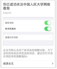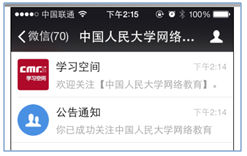 “中国人民大学网络教育”微信公众企业号,自2015年5月28日在北京教学服务中心开始试用。对该公众号的相关说明如下: