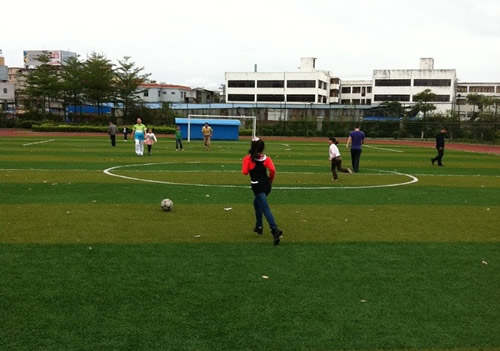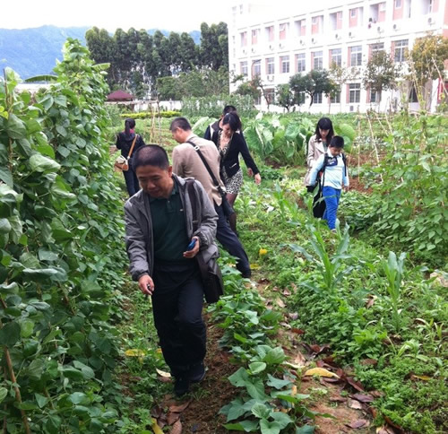 9点半,服务中心新生、老生和领队老师一共28个家庭共计58个人来到了启明学校。该校有70个老师和30个学生,超过三分之二的面积都是种植区。在校长的引导下,大家带着各自的孩子分散行动,先熟悉了种植的各种瓜果,接着开始义务拔草并摘取成熟的瓜果。10点半,我们在操场上和特殊学校的部分学生举行了一场足球联谊赛。中午聚餐时,学员都称赞此次的公益活动比以往的交流活动更有意义,能在大自然陶冶自己的心灵,更能教育自己的孩子,希望教学服务中心今后能多举行一些可以全家参与的公益活动。