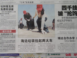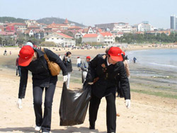 人大网院山东外贸教学服务站举办了向市民和游客宣传有关绿色环保和绿色奥运的相关知识,积极动手清除沿海一线废物垃圾的“绿色环保”公益活动。