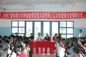 中国人民大学网络教育台州电大教学服务中心全体师生积极响应 2007 网上人大公益活动号召,共捐赠 1585 元,捐书 60 多册,尽一份自己的力量来帮助贫困学校的孩子建一个做梦都想拥有的 “希望 图书室”。