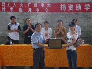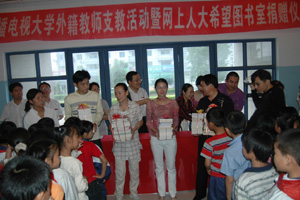 网上人大辽宁电大教学服务中心师生共计 318 人于 2007 年 5 月 20 日 ,以“关注我们身边的教育贫困”为主题,举办了资助抚顺市清源县敖家堡乡敖家堡小学贫困学生建立“希望图书室”的活动。在敖家堡乡中心小学的操场上,服务中心的师生与敖家堡乡中心小学师生们展开了一场隆重的“希望图书室”捐赠活动。捐赠图书 2187 册,价值 42685 元;捐赠电视 3 台,价值 5000 元;捐赠电脑 2 台,价值 4000 元,捐赠衣物及文具若干。