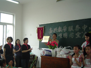 “网上人大希望图书室”启动仪式,在服务中心老师和同学们的共同努力下,积极展开。虽然下着瓢泼大雨,可是依旧阻挡不了服务中心的师生去嘉兴精英学校给贫困学生捐书献爱心的热情。
