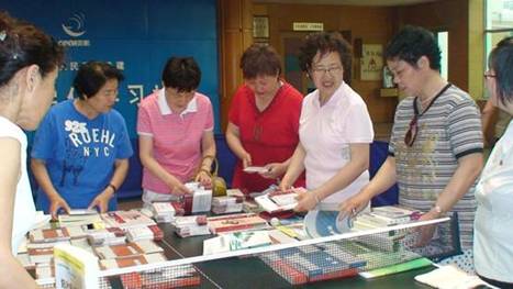 社区居民踊跃挑选光盘和书籍