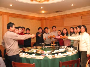 2003年12月6日,0309工商企业管理的同学和辽宁电大服务站的老师进行了班级聚会。在温馨的音乐声中,来自不同岗位的同学们和辽宁电大服务站的老师围坐在一起,人人笑容满面,那种亲切自然的交流似春风一般融化了寒冷的空气,让人觉得舒心惬意。每个人都感受到了温暖。
