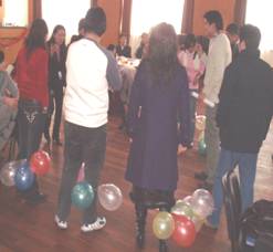 周六上午 9 点,服务中心老师开始做会场布置,为联谊活动的举行做好了充分的准备。活动开始后进行了经典游戏之踩气球、班长才艺表演、幸运金银铜奖抽奖、全民杀人等等游戏环节。大家玩的不亦乐于。