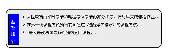1. 在第一次课程考试预约前须通过《远程学习指导》的课程考核方可预约。